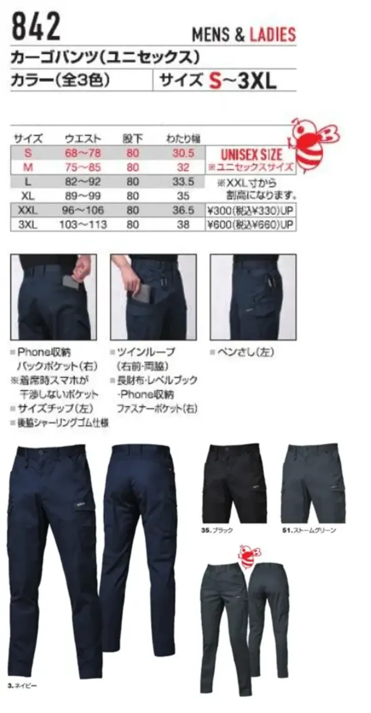 842 カーゴパンツ(ユニセックス) CRAZY STRETCH 841シリーズ