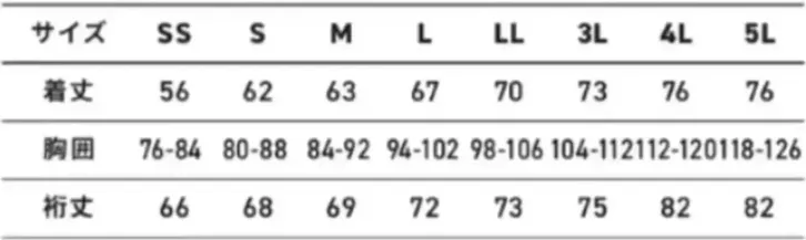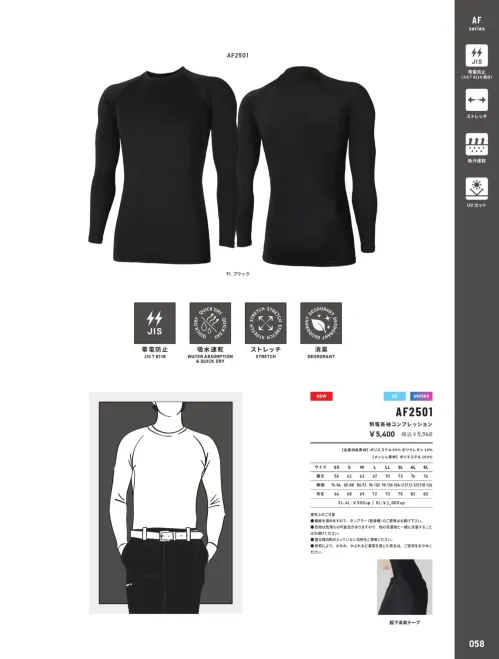 制電長袖コンプレッション アルトコーポレーションAF2501のサイズ表