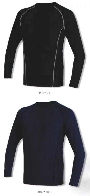 服内を駆け巡る風が生み出す爽快感。JIS T8118適合の制電性能を備えた長袖コンプレッションインナー。ポリエステル90%・ポリウレタン10%のストレッチ素材が身体にフィットし、吸汗速乾機能で汗を素早く拡散。静電気を抑えながら快適な作業環境をサポートします。