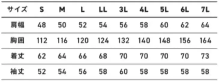 ・サイズ:S・M・L・LL・3L・4L・5L・6L・7L