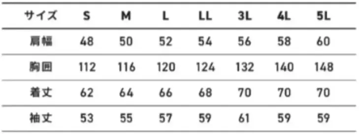 空調服® 長袖ブルゾン(ファン・バッテリー別売) アルトコーポレーションKU92401のサイズ表