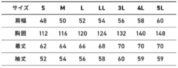 空調服® 長袖ブルゾン(ファン・バッテリー別売) アルトコーポレーションKU92500のサイズ表