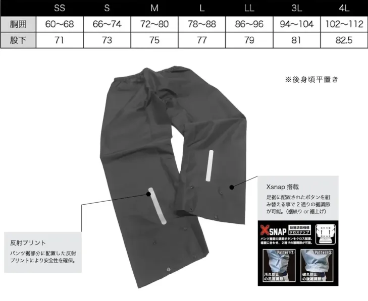 ・裾にはXsnap構造を採用し、裾絞りと裾上げの調節が可能