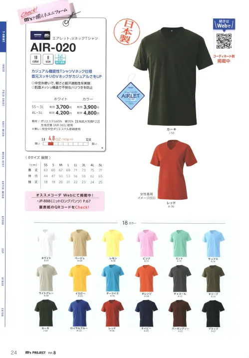 エアレットVネックTシャツ マスダAIR-020A