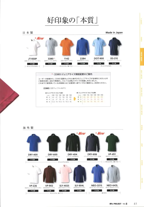 ドライタッチボタンダウン長袖 マスダDRY-606のサイズ表