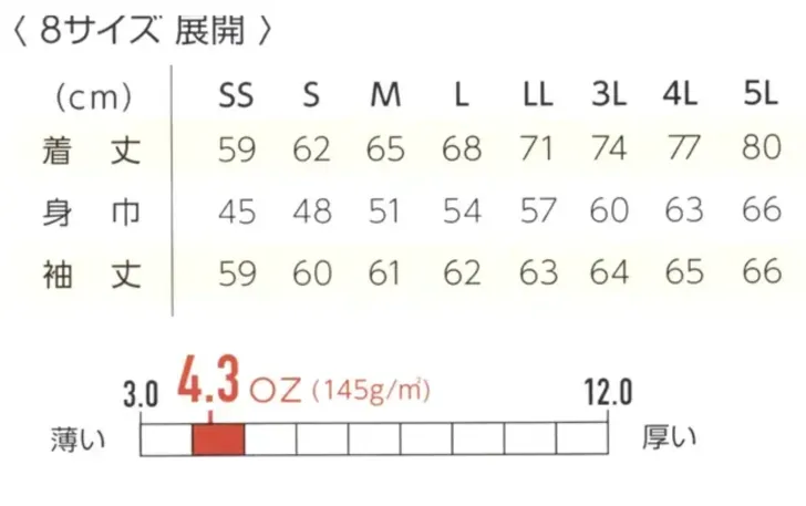 ■素材特長吸水速乾・生地厚4.3oz(145g/m2)