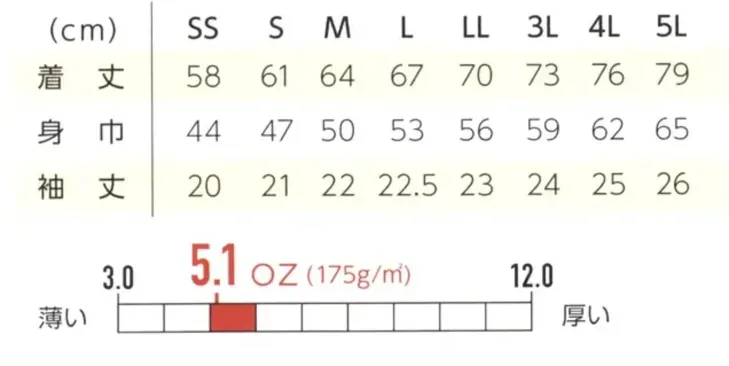 ■素材特長吸汗速乾・UVカット(UPF50+)・生地厚5.1oz(175g/m2)