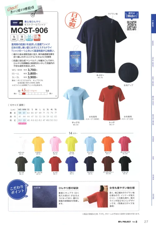 モストクールTシャツ マスダMOST-906-Bのサイズ表