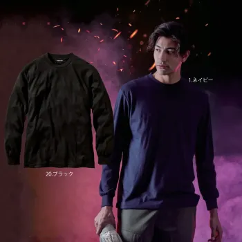 難燃アクリルを使用した高機能長袖ハイネックシャツ。アクリル65%綿33%ナイロン2%のブレンド素材により優れた難燃性とやわらかな肌触りを両立。洗濯を繰り返しても難燃性能が低下しにくく火気を扱う現場でも安心して着用できる一着です。