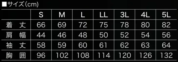 難燃長袖ハイネックシャツ 村上被服413のサイズ表