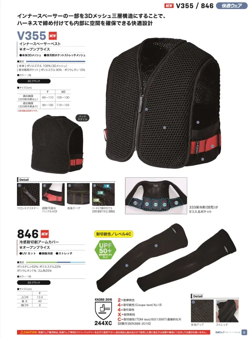■素材特長接触冷感・ストレッチ・UVカット(UPF50+)・耐切創(レベル4C)・耐摩耗・耐引裂