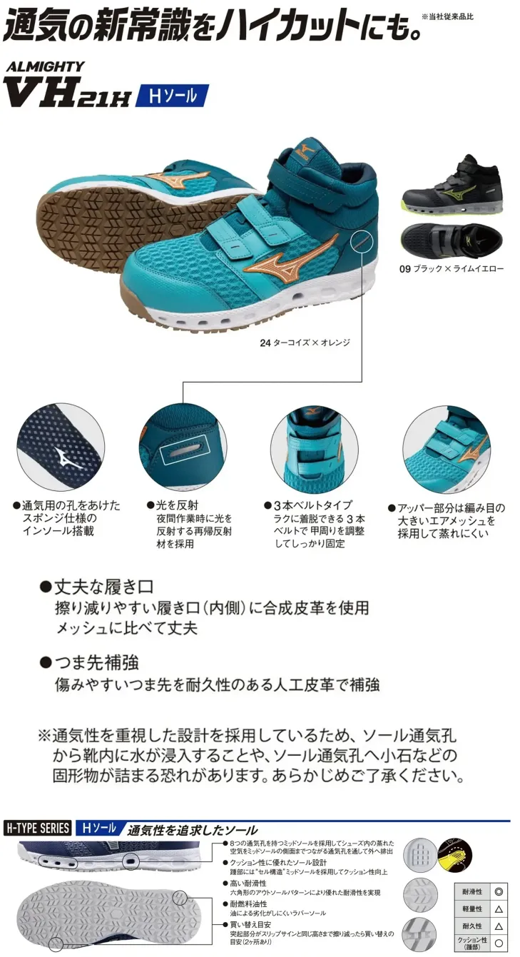 ■形状特長3本ベルトタイプ・ハイカット・再帰反射材・丈夫な履き口・つま先補強・セメント製法・クッション性に優れたソール・買い替え目安スリップサイン(2ヶ所)