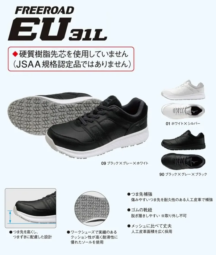 耐滑性と躓きに配慮し、耐久性にも優れたゴム紐で着脱容易の硬質先芯なしワーク用スニーカー。