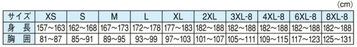 ・サイズ:XS・S・M・L・XL・2XL・3XL-8・4XL-8・6XL-8