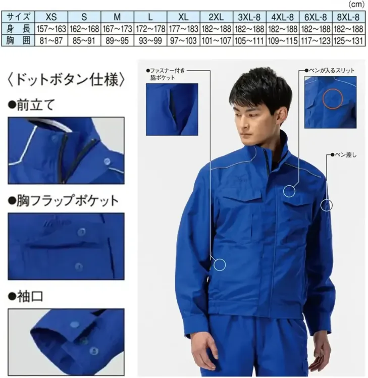 ・左胸と左袖にペン差し付きで利便性アップ