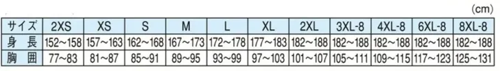 ワークジャケット【通年向け】 ミズノF2JEA186-Aのサイズ表