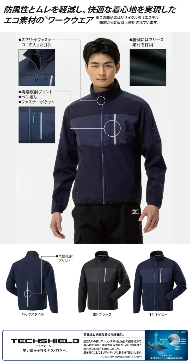 ■素材特長防風・ストレッチ・蒸れ軽減・エコマーク認定商品・リサイクルポリエステル繊維50%以上使用