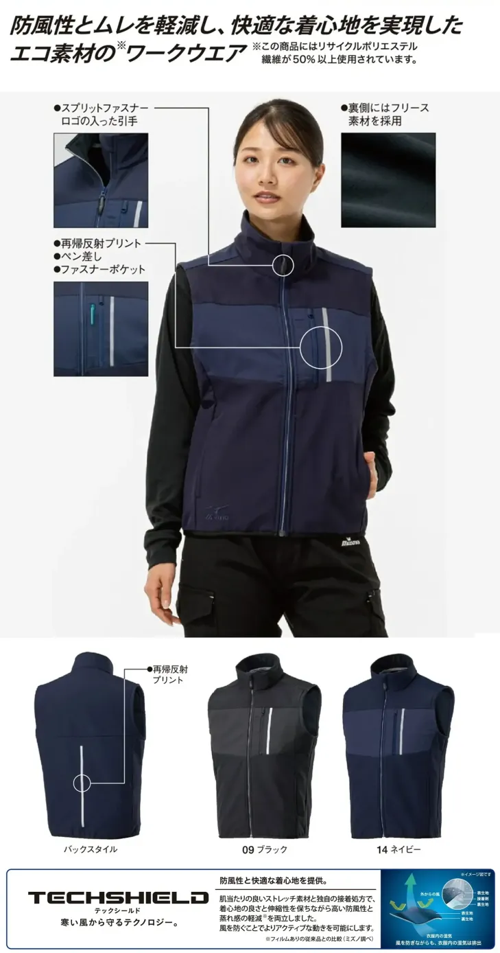 ■素材特長防風・ストレッチ・蒸れ軽減・エコマーク認定商品・リサイクルポリエステル繊維50%以上使用