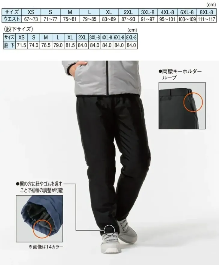高機能発熱素材〈ブレスサーモ〉を採用した防寒パンツ。体から発する水分を吸収して発熱することで、寒冷環境でも暖かさをキープ。中綿量を多く採用しながらも軽量設計で、制電性能を備えた高性能モデルです。