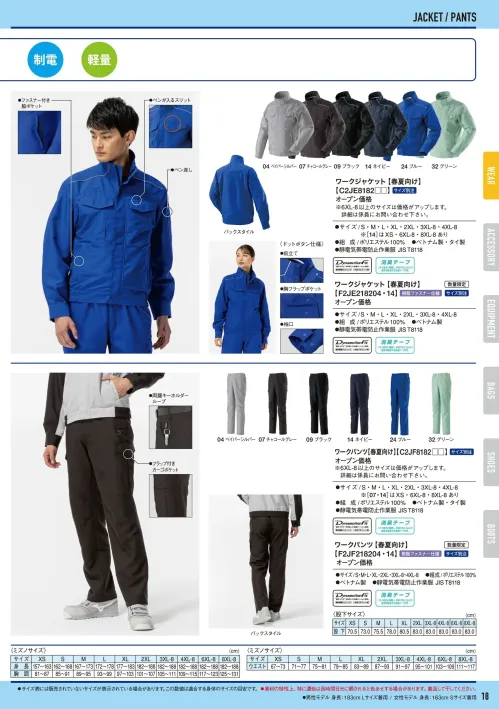 ■素材特長軽量・制電(静電気帯電防止作業服 JIS T8118)・金属不使用