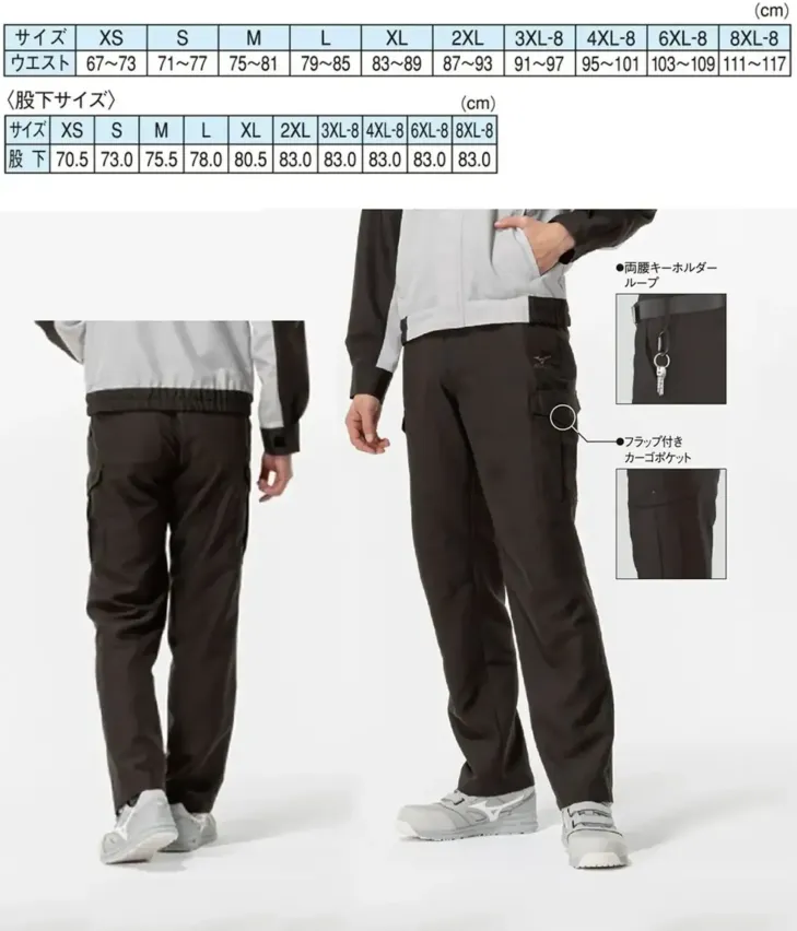 ワークパンツ【春夏向け】 ミズノF2JF2182のサイズ表