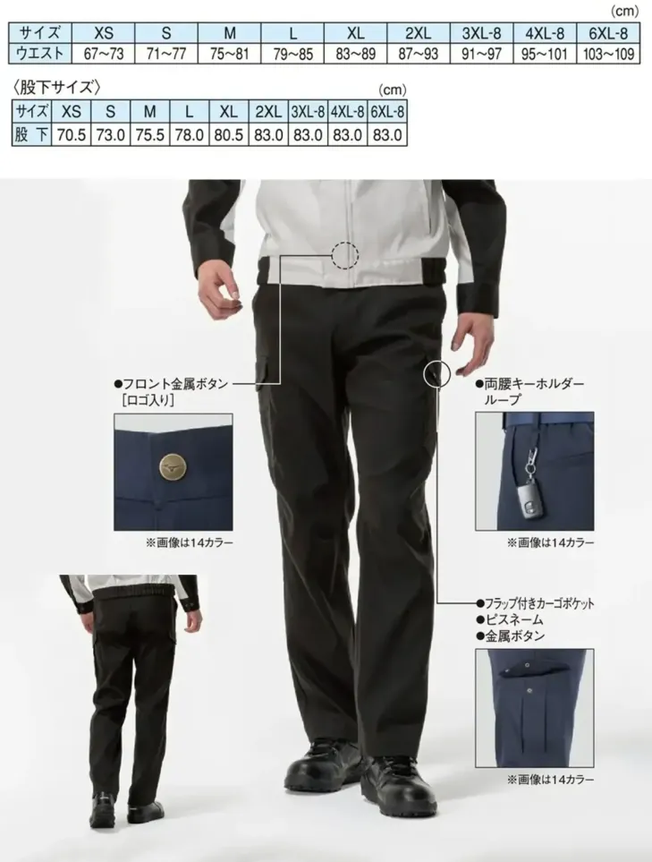 ワークパンツ【通年向け】 ミズノF2JFA181のサイズ表