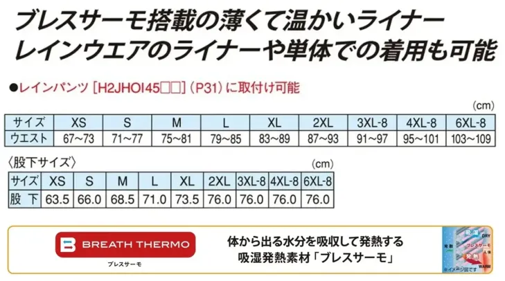 ■形状特長レインパンツ〈H2JHOI45〉取付対応・ダイナモーションフィット
