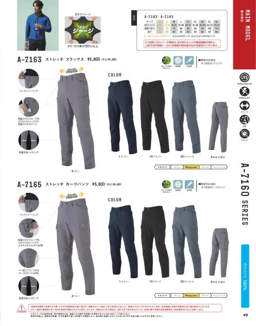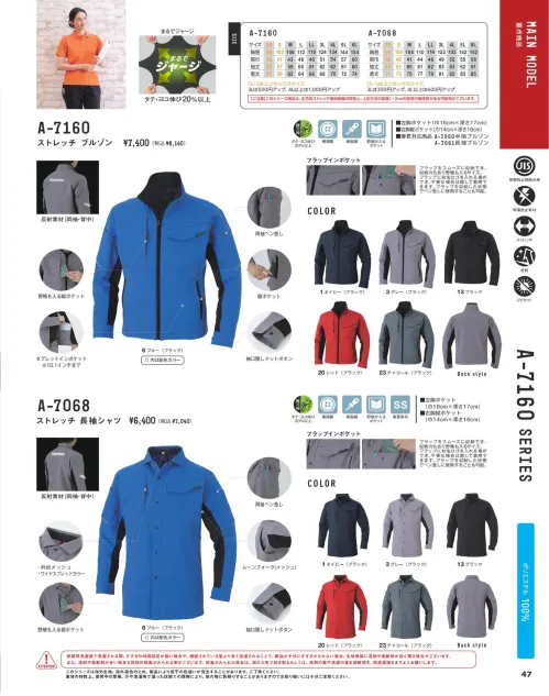 ストレッチブルゾン コーコス信岡A-7160のサイズ表