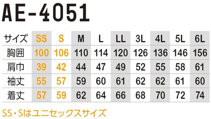 ・サイズ:SS・S・M・L・LL・3L・4L・5L・6L(SS・Sはユニセックスサイズ)