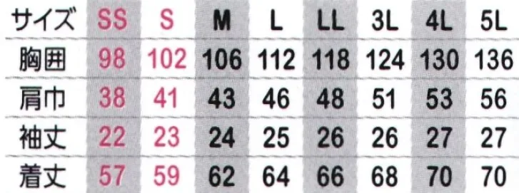 エコ・ストレッチ半袖ブルゾン コーコス信岡AE-9050_Aのサイズ表
