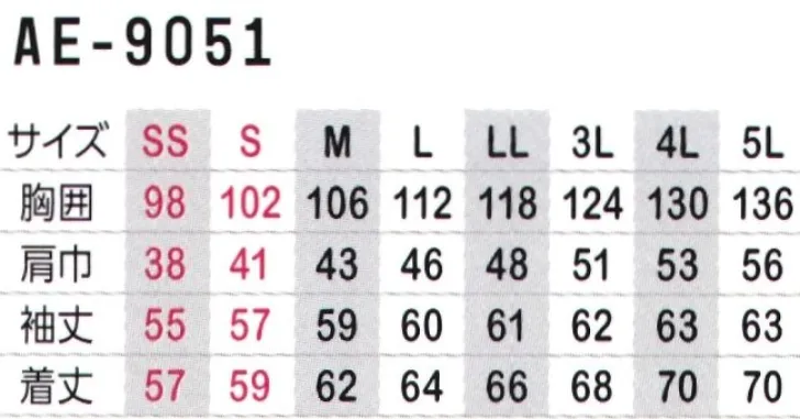 エコ・ストレッチ長袖ブルゾン コーコス信岡AE-9051_Aのサイズ表