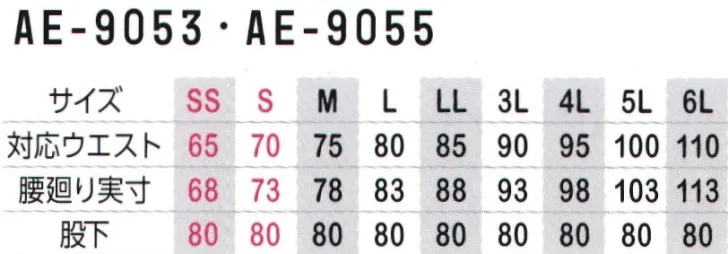 エコ・ストレッチスラックス コーコス信岡AE-9053_Aのサイズ表