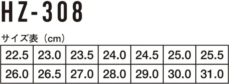 プロスニーカー® コーコス信岡HZ-308のサイズ表