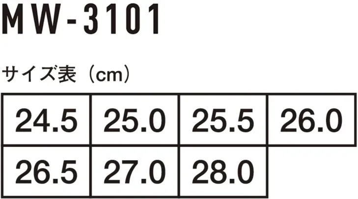 フライワーク セーフティースニーカー1.0 コーコス信岡MW-3101のサイズ表
