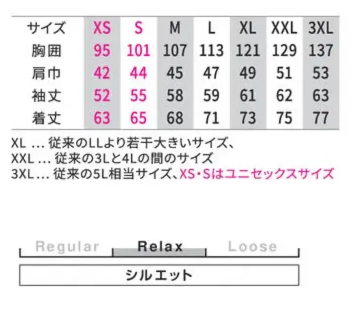 ・サイズ:XS~3XL