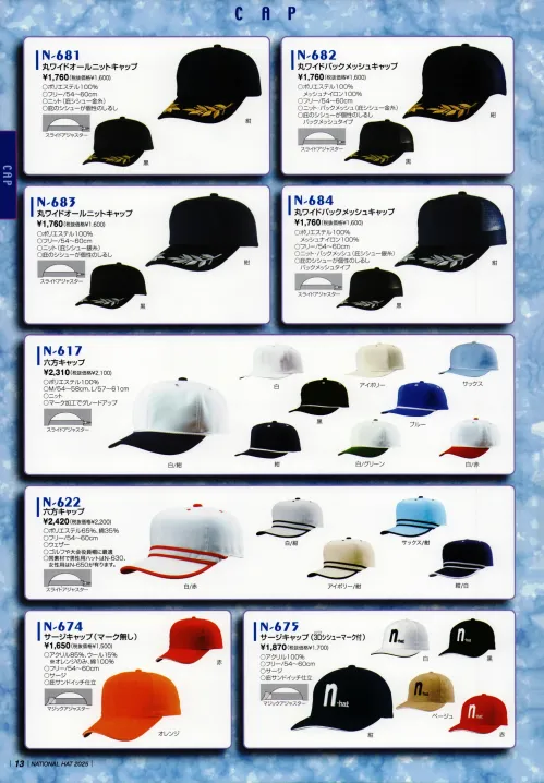 パイピンキャップ ナショナルハットN-668のサイズ表