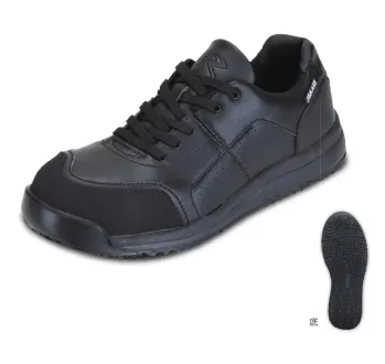 水・油・石鹸水等の上で世界最高峰の防滑性能を発揮するHyperVソールを搭載のうえ、従来品に比べHyperVソール接地面積30%増で滑りにくさもUP。さらに高いクッション性を発揮するミッドソール採用。樹脂先芯搭載のJSAA規格A種プロスニーカー。