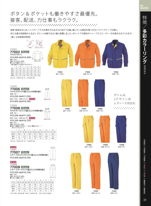 キャストカーゴパンツ(77006) 大川被服77006のサイズ表