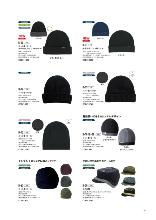 B-30 ニット帽 ワッチ リバーシブル リフレクター