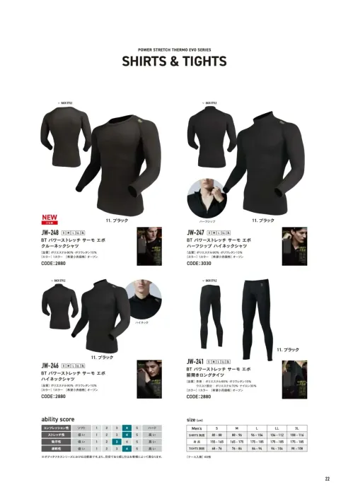 JW-248 BTパワーストレッチ サーモ エボ クルーネックシャツ