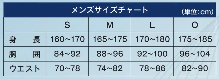 メンズロングタイツ 薄手 オンヨネODP99520のサイズ表