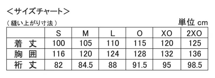 COLDBREAK COAT オンヨネOKJ95002のサイズ表