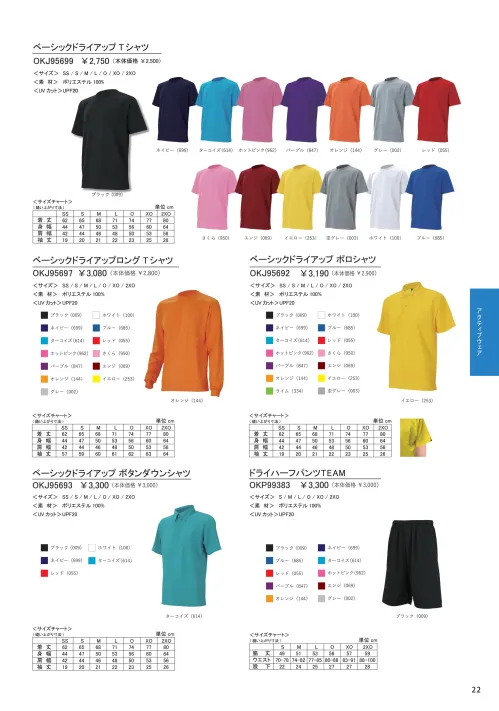 ベーシックドライアップロング Tシャツ オンヨネOKJ95697-Bのサイズ表