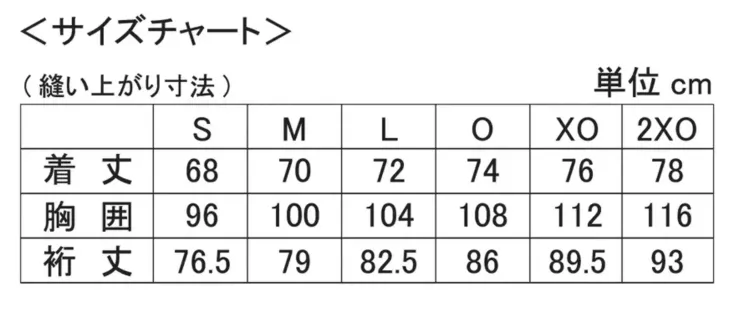 HYGLATER ZIP UP LONG SLEEVE オンヨネOKJ95720のサイズ表