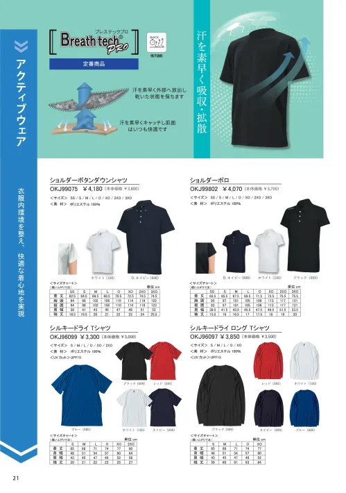 シルキードライ Tシャツ オンヨネOKJ96099のサイズ表