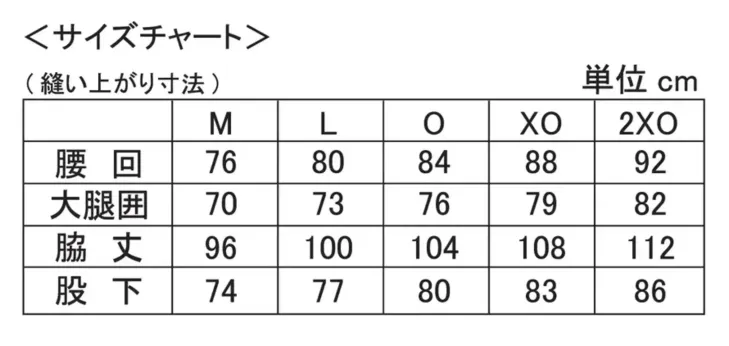 COLDBREAK PANTS オンヨネOKP95003のサイズ表