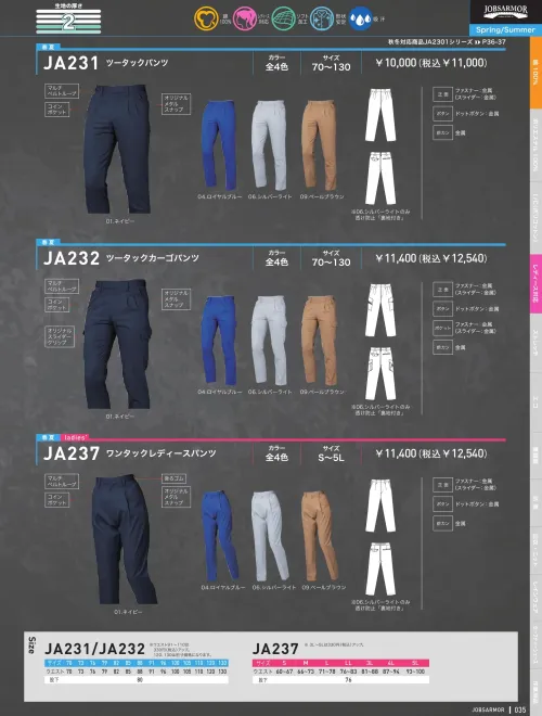 ワンタックレディースパンツ 三愛JA237のシーズンアイテム