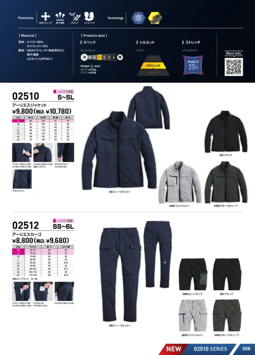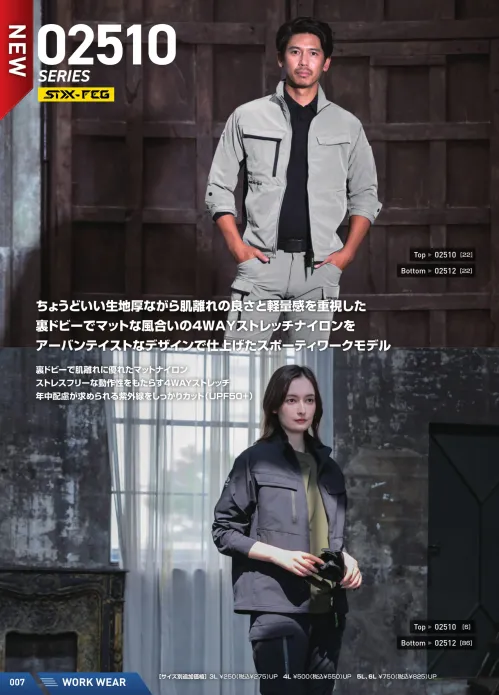 ちょうど良い厚みと軽やかな着心地を両立した4WAYストレッチナイロンを採用したアーリエスカーゴ。裏ドビー仕上げによるマットな質感が上品さを演出し、肌離れの良さと動きやすさを兼ね備えています。スタイリッシュなシルエットに加え、紫外線をカットするUVカット(UPF50+)機能付きで、屋内外問わず快適に着用できるスポーティワークモデルです。