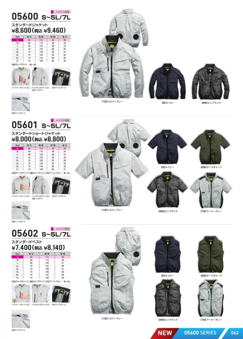 ファン付ウェアに欠かせない遮熱性とUVカットUPF50+を備えた05600スタンダードジャケット。遮熱ランクS35の裏チタンコーティングが日差しの熱を軽減し吸汗速乾素材で快適さをキープ。実用性を高めた保冷剤ポケット付きのワークスタンダードモデルです。