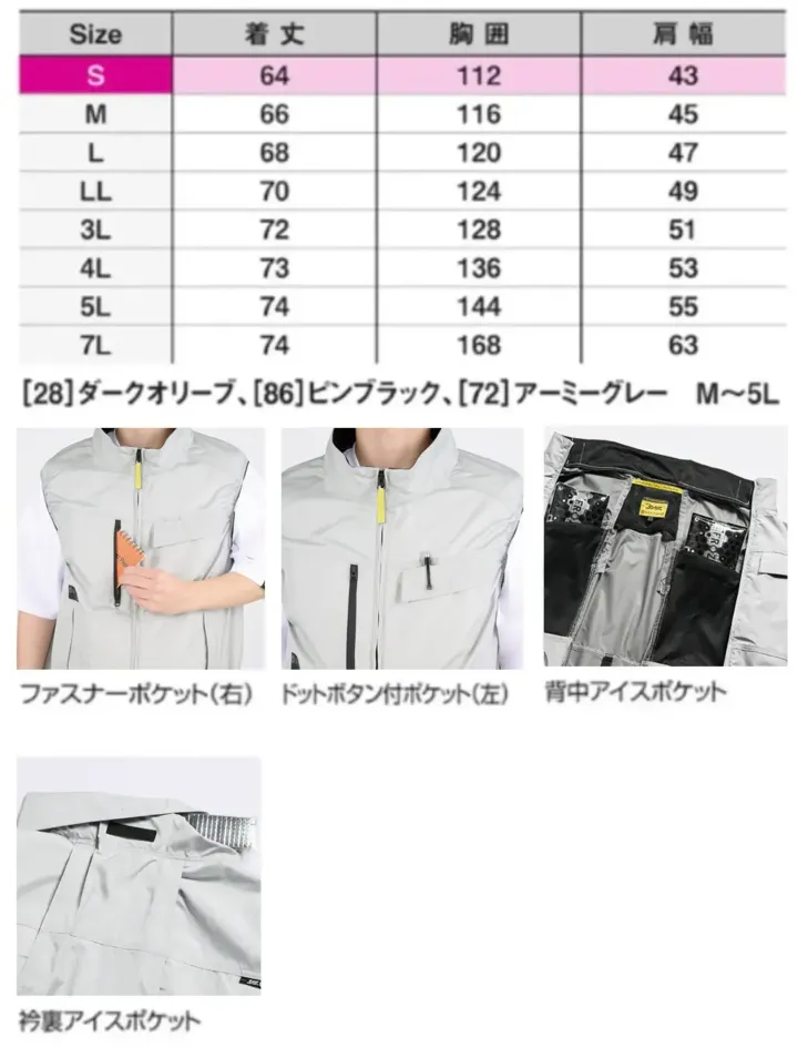 ・サイズ:S~5L/7L ※28.ダークオリーブ、72.アーミーグレー、86.ピンブラックはM~5L